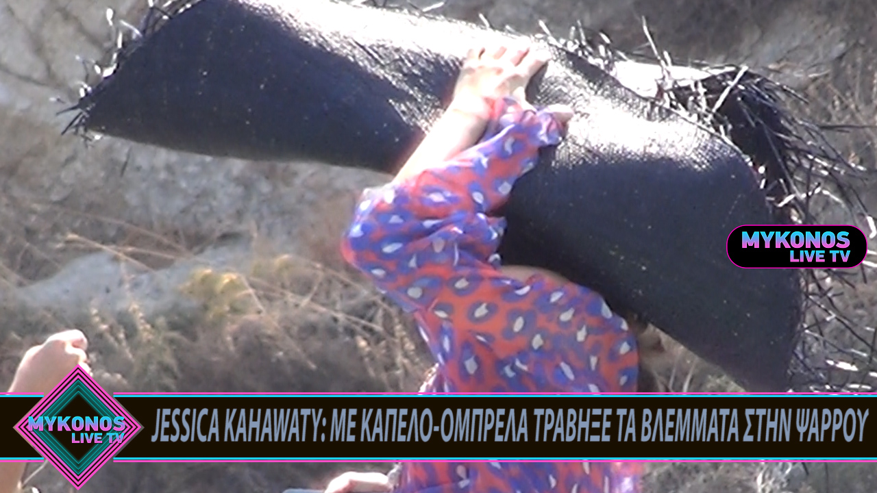 Τα γυρίσματα ξένου διαφημιστικού με την συμμετοχή διάσημων τοπ μόντελ καλά κρατούν στην Μύκονο! Ένα από τα μοντέλα που πρωταγωνιστούν είναι και η Αυστραλολιβανέζα Jessica Kahawaty, η οποία για τις ανάγκες της διαφήμισης εμφανίστηκε στην Ψαρρού με καπέλο-υπερπαραγωγή! Συγκεκριμένα η 31χρονη καλλονή φορούσε τεράστιο ψάθινο καπέλο που εμοιάζε με ομπρέλα και καλύπτε όλο της το πρόσωπο. Φυσικά, το εντυπωσιακό αξεσουάρ τράβηξε την προσοχή των λουόμενων και την κάμερα του Mykonos Live TV. Να πούμε ότι η Jessica Kahawaty δεν είναι τυχαία στον χώρο της μόδας. Στο ενεργητικό της έχει πολλές διακρίσεις σε διαγωνισμούς ομορφιάς. Το 2012 στέφθηκε Μις Αυστραλία και την ίδια χρονιά ανακηρύχθηκε 2η Αναπληρωματική Μις Κόσμος. Έχει πρωταγωνιστήσει στις καμπάνιες της εταιρίας καλλυντικών Maybelline και της αυτοκινητοβιομηχανίας Lexus. Δείτε την Jessica Kahawaty με το καπέλο-υπερπαραγωγή στην Μύκονο, στο βίντεο του Mykonos Live TV. Τα βίντεο του καναλιού δεν βρίσκονται πλέον στο YouTube, αλλά μόνο στο site mykonoslive.tv.