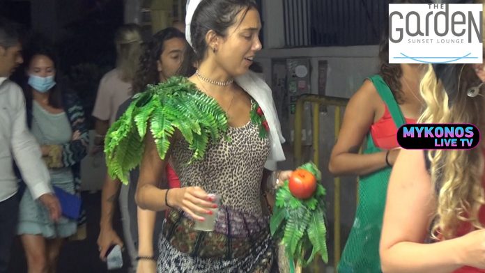 Τις απόκριες δεν τις χαρήκαμε φέτος λόγω κορωνοϊού, αλλά μια τουρίστρια στην Μύκονο φρόντισε να τις επαναφέρει μέσα στο καλοκαίρι! Αλλοδαπή επισκέπτρια περπατούσε στα κοσμικά Ματογιάννια φορώντας πλαστικά φύλλα δέντρου και κρατώντας στα χέρια ένα ψεύτικο μήλο! Αυτή η εμφάνιση φυσικά δεν μπορούσε να περάσει απαρατήρητη από την κάμερα του Mykonos Live TV. Αν κρίνουμε από το πέπλο στα μαλλιά, μάλλον επρόκειτο για την νύφη στο bachelorette πάρτυ της. Πάντως, όπως θα δείτε στα πλάνα, η μέλλουσα νυφούλα δεν έδειχνε και πολύ χαρούμενη. Λέτε να το μετάνιωσε;!