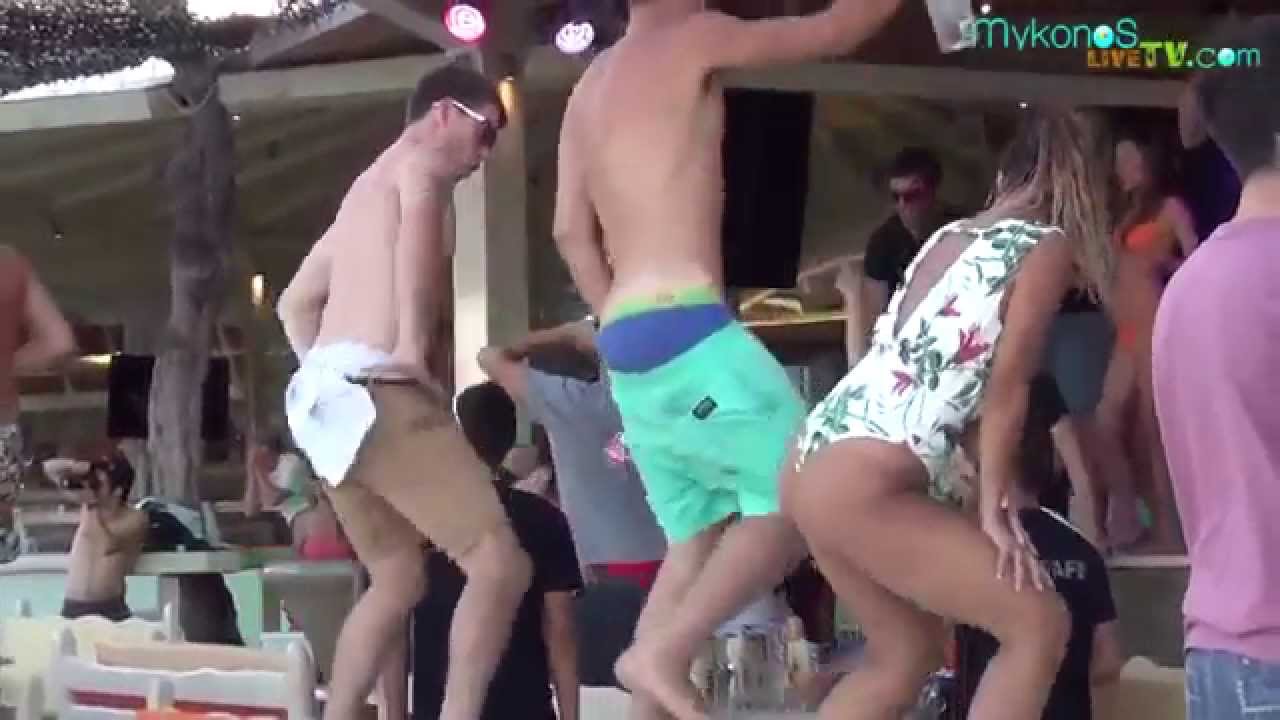 Sexy girls in bikini in Paradise beach at Tropicana club in Mykonos dancing gangnam style!!