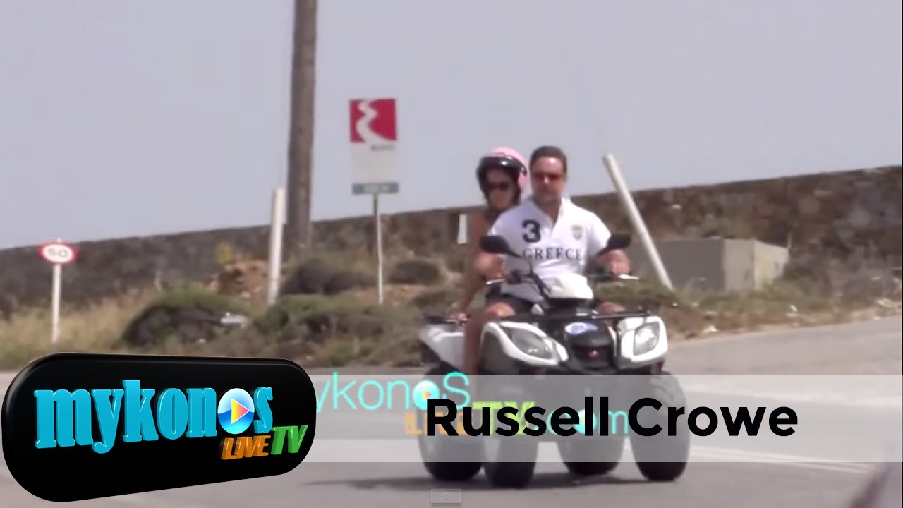 Facebook: https://www.facebook.com/pages/Mykonos-LIVE-TV/845070212218971 G+:https://plus.google.com/u/0/b/112118370047568592647/112118370047568592647/videos?pageId=112118370047568592647 Russell Crowe with friends arrived in Mykonos / Greece with friends. The first day of their stay on the famous Greek island they drove around Mykonos on quads to discover the most beautiful spots of the island. Russell Crowe wearing a white T shirt with the word “Greece” on it, was in a very good mood and enjoyed the ride on the quad!! O Russell Crowe οδηγάει γουρούνα με τους φιλούς του στην Μύκονο Ι Russell Crowe with friends driving on quad around Mykonos